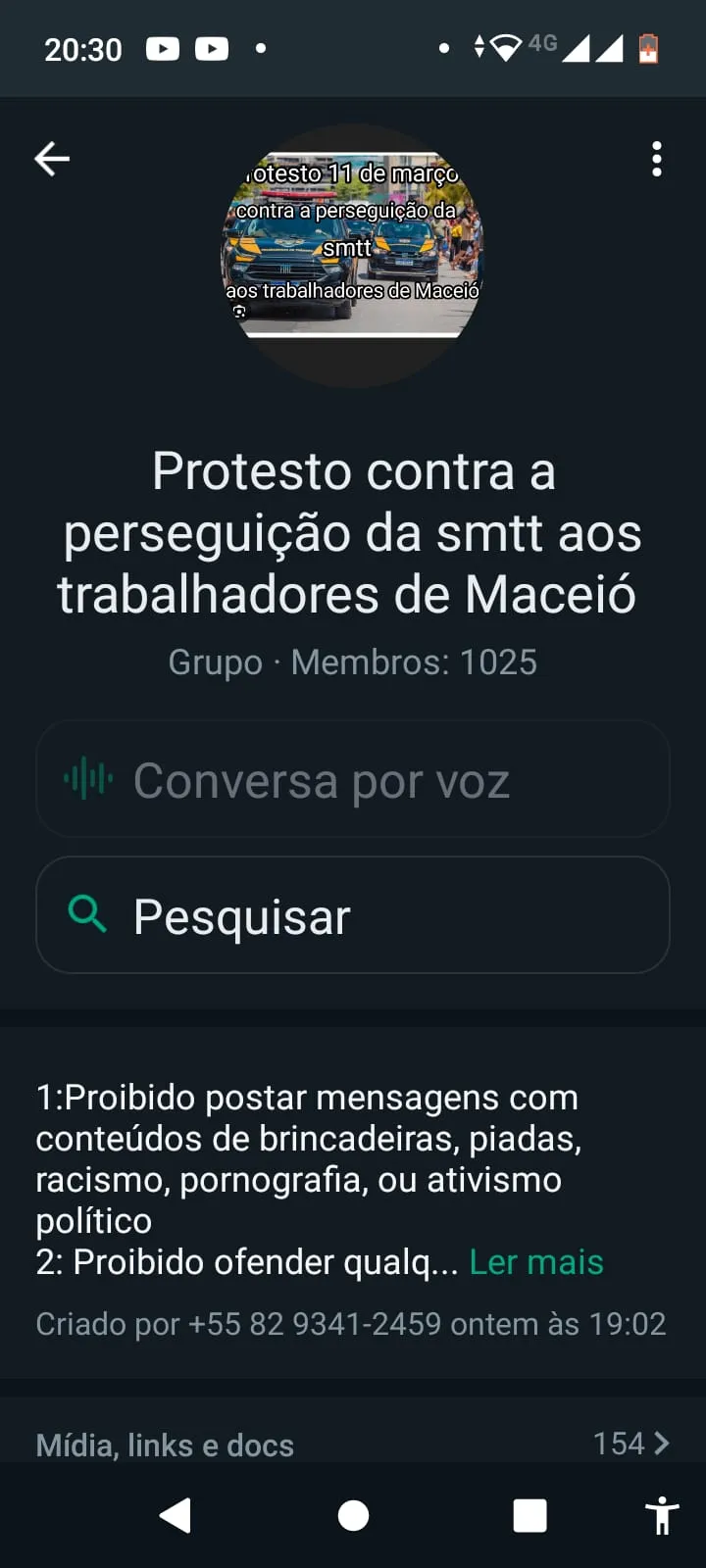 Colegas de trabalho, inconformados com a denúncia do rapaz, criaram um grupo no WhatsApp intitulado de “Protesto contra a perseguição da SMTT aos trabalhadores de Maceió”, que conta com mais de mil participantes.