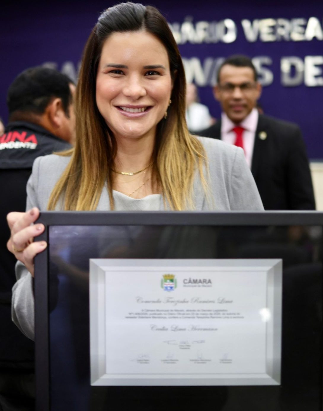 Na ocasião, a gestora foi agraciada com a Comenda Terezinha Ramires Lima, honraria concedida a mulheres que se destacam por relevantes serviços prestados à comunidade, especialmente na defesa dos direitos femininos, da saúde e da educação. A homenagem foi proposta pelo vereador Siderlane Mendonça.