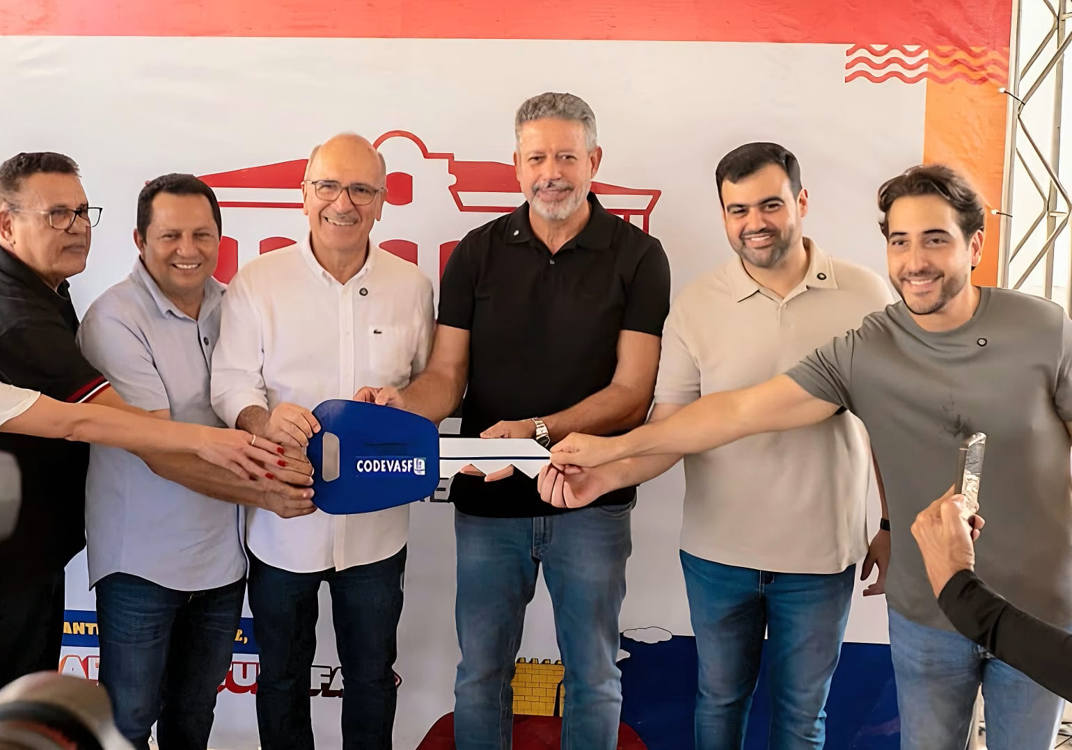 A cerimônia contou com a presença do prefeito Ronaldo Lopes, do vice-prefeito Valdinho Monteiro, do deputado federal Arthur Lira, do presidente da Câmara de Vereadores de Penedo, Messias da Filó, do superintendente regional da Codevasf, João Paulo Tavares, da diretora da Área de Irrigação e Operações (AI) da Codevasf, Alessandra Cristina Rossin, e do ex-secretário executivo de Saúde de Alagoas, Guilherme Lopes. Vereadores, secretários municipais e a população também acompanharam o momento.
